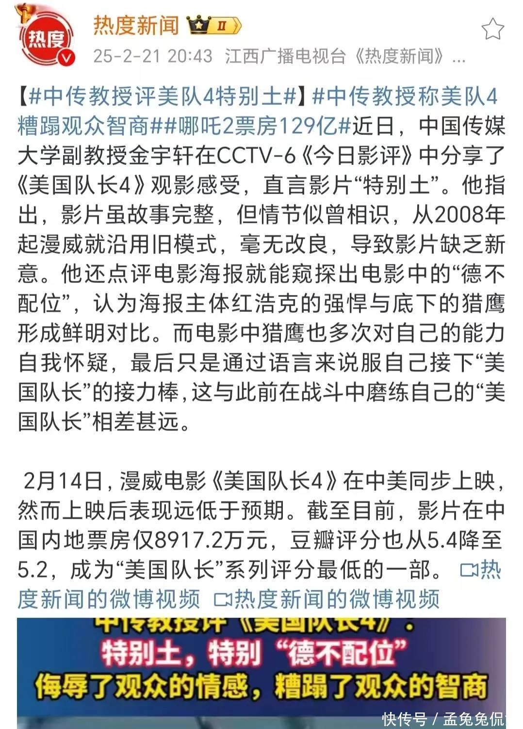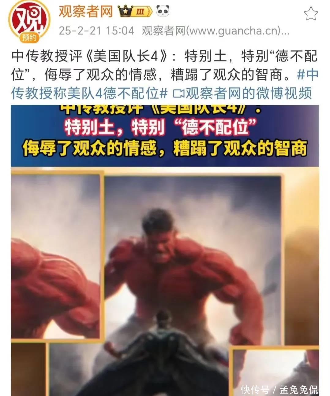 除了月旦山姆德不配位,金宇轩评释还月旦了《好意思队4》故事靡烂,毫无编削等诸多不及。
